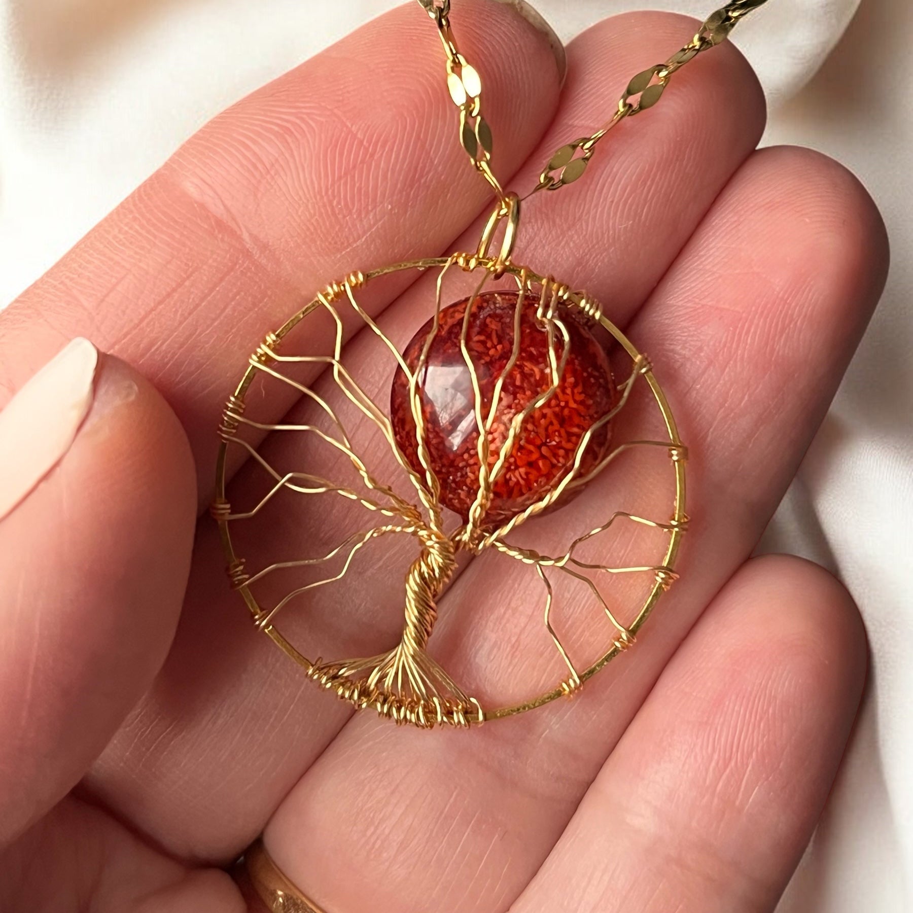 Collier doré arbre de vie et coucher de soleil en résine (2)